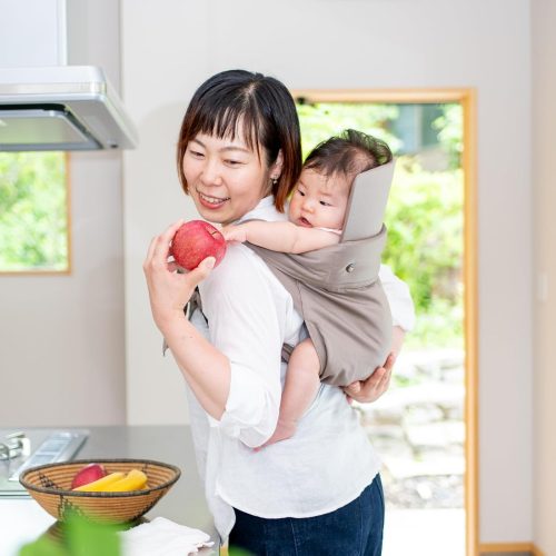 やわらかいメッシュ素材を採用しており、通気性は良好。また、スリムな設計で動きやすく、家事をしながらでも快適に使用できます。パパ・ママなど複数人で共用しやすいのも嬉しいポイントです。