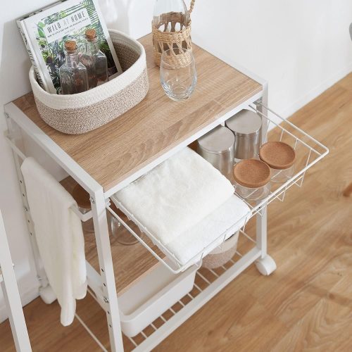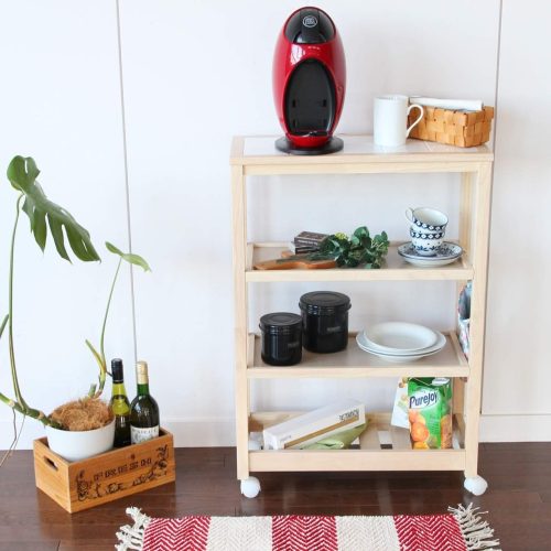 幅34×奥行59×高さ73cmサイズで、調理器具や食材など細かなアイテムを整理できます。重量約5kgと軽量なため、女性でも扱いやすいのが特徴。シンプルな構造なので、組み立ても約30分で完了すると謳われています。