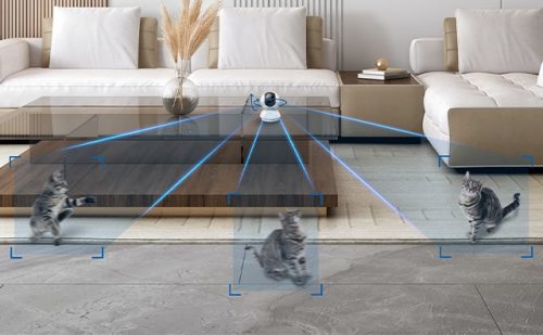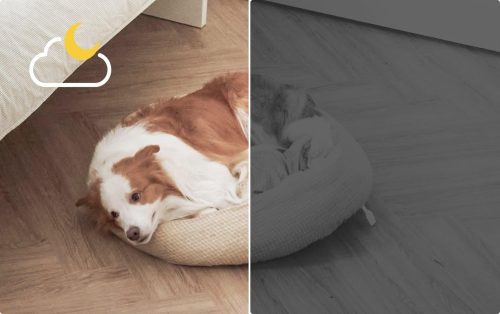 ワンワン通知と双方向通話により、愛犬の状況をリアルタイムで把握可能。自動追尾機能によって動き回る愛犬を捉え続けるほか、カラー暗視で夜間も鮮明に映し出します。