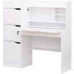 引き出しも付属し、ペンケースやケーブルなどをまとめて収納可能。足元にある大きめの棚には、カバンやスキャナーなども置けます。