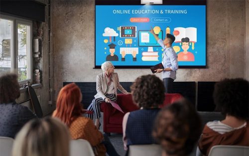 4.0kgの軽量ボディで持ち運びやすく、デジタルサイネージや店舗映像での利用にも適しています。4点コーナージオメトリ補正機能によって、正面投写が難しい設置環境でもきれいな四角形で投写が可能。会議室や教室の常設にぴったりです。