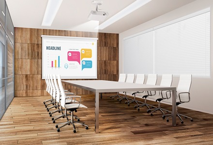 投影する位置が固定されるので、使うたびにセッティングや調整をする手間がありません。同じ会議室で頻繁に使用する場合や、大人数での会議などに向いています。なお、設置には天井への穴あけや金具の取り付けなど、専門的な工事を必要とするケースが一般的です。
