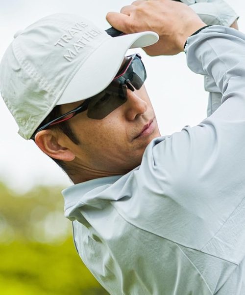 レンズには偏光機能も搭載し、強い日差しや芝の照り返しを軽減。また、テンプルエンドのノンスリップラバーと調節可能なノーズパッドが、スイング時のズレを防いで高いフィット感を保ちます。