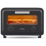 上下にヒーターを1本ずつ備えたシンプルな構造で、タイマーを設定するだけの簡単操作で使えるのが魅力。タイマーはダイヤル式で、最大15分まで調理時間が設定できます。本体正面の扉はガラス窓を搭載しているため、様子を確認しながらの調理が可能です。