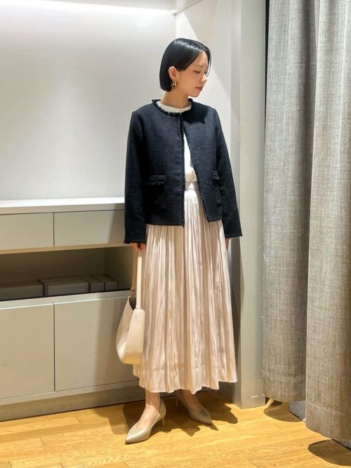 ダークネイビーのツイードジャケットを取り入れた、ハレの日にふさわしい上品コカジノ バカラ 英語です。ボトムスには淡いベージュのプリーツスカートをあわせ、春らしい軽やかさを演出。歩くたびに揺れるスカートが華やかな雰囲気を醸し出します。