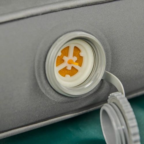 空気注入口には逆止弁が付いており、ポンプを抜いても空気が漏れにくいのが魅力。バルブは広口設計で、電動ポンプも使えます。