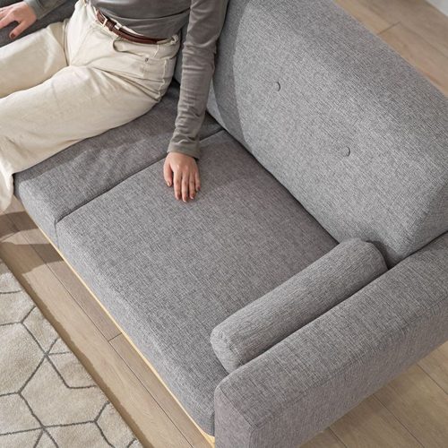 厚みのある座面にウレタンフォームを使用し、底付き感を軽減。ファブリック素材の張り地はさらっとした肌触りで、長時間座っても快適に過ごしやすいのがポイントです。付属のクッションは腰当てや抱き枕として活用でき、リラックスタイムをサポートします。