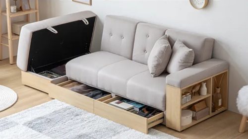 急な来客時に、散らかりがちな雑誌やひざ掛けをサッと隠せるのも魅力。また、家具を減らせるため、収納家具の購入費用を抑えたい方にもぴったりです。