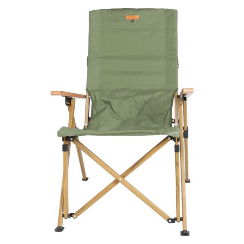 腕のサポートに役立つアームレストが付属し、長時間の使用も快適。竹集成材を採用しており、視覚的に美しくおしゃれな仕上がりです。前脚先端のパーツにより、柔らかい地面でも安定感のある設置が可能。スリムに折りたたみできる収束式のため、持ち運びや収納にも便利です。