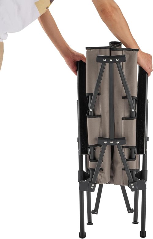 さらに、強度の高い600Dポリエステル素材とアルミ合金フレームを採用し、静止耐荷重200kgを実現。重量は約5.5kgで、片手で持ち運べます。キャンプ場でゆったりくつろぎたい方や、車内の限られたスペースを有効活用したい方におすすめのモデルです。