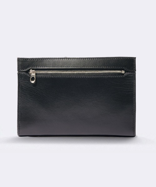財布やスマホなどの小物をまとめて持ち歩けるレザーケースです。縦22.0×横31.0cmのサイズ感で、B5ファイルや11インチのiPadも収納可能。フラットな設計ながら、中身の量に合わせてふっくらと変化し、革の表情の変化を楽しめます。