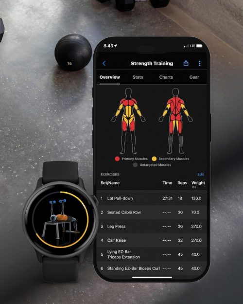 GPS内蔵でウォーキングやランニングなどを記録可能。ダンスフィットネスやヨガなど、さまざまなスポーツを楽しめるのも魅力です。独自のBody Batteryや睡眠スコアで、日々のコンディションを理解できます。