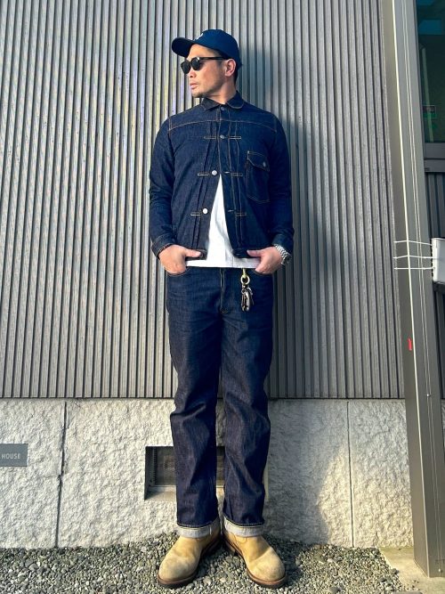 デニムオンデニムの武骨コーデ