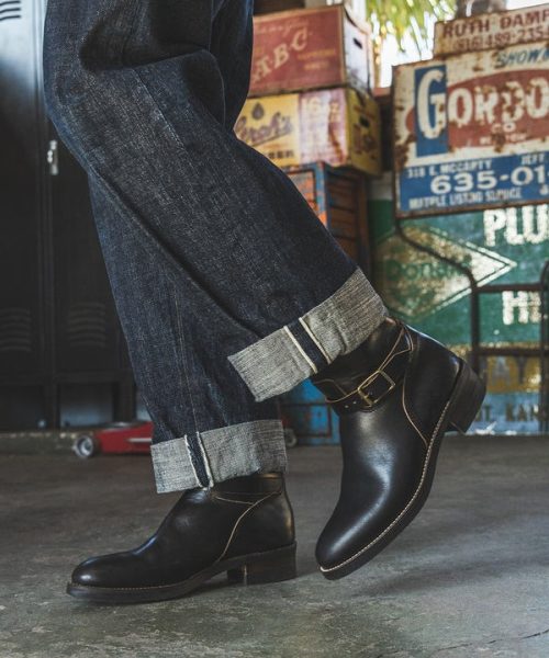 トゥの高さを抑えたシャープなシルエットに、オリジナルの鉄製バックルを配した、クラシカルな佇まいも魅力。グッドイヤーウエルト製法によるしっかりとした堅牢さと、ヒールを固定することにより生まれるくびれによるホールド感を備えています。アメカジやワークスタイルを格上げしたい方にぴったりです。
