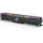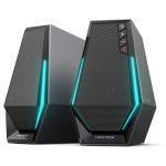 RGBダイナミック照明を搭載したスタイリッシュなPCスピーカー。4つの照明モードを搭載しており、音楽に合わせて光が変化する演出が魅力です。Bluetooth 5.4とUSBケーブルによる2種類の接続方法に対応し、さまざまな機器と手軽に接続できます。