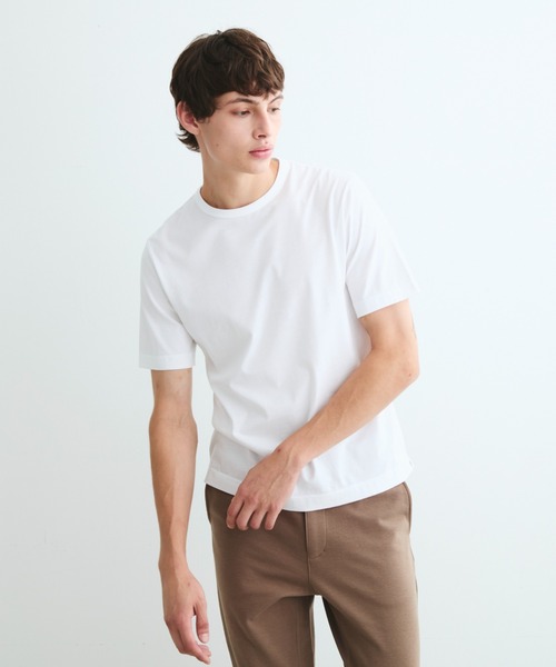 裾には緩やかなラウンドヘムを配し、リラックスしたシルエットに。シャツやジャケットのインナーとしてはもちろん、1枚でさらっと着用してもサマになるおすすめのアイテムです。