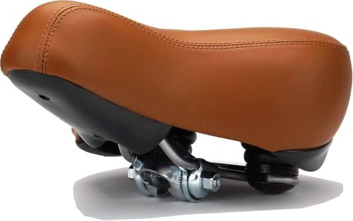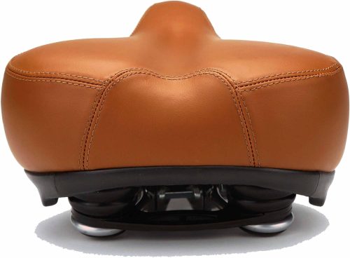 さらに、人間工学に基づいたデザインで、後部は広く前部は狭い形状が特徴。太ももがこすれにくく、体重を効果的に分散させます。サドルの底部には金属スプリングサスペンションを搭載し、路面からの衝撃を吸収するのが特徴です。