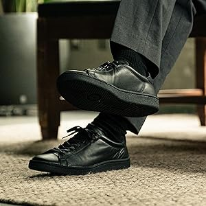 合成皮革は、普通の革靴のような本革に近い高級感ある見た目が魅力です。スーツスタイルや通勤時の服装と相性良好。タイプにもよりますが、ビジネスシーンなどフォーマルな場面におすすめです。