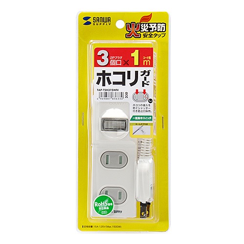 サンワサプライ(SANWA SUPPLY) 火災予防安全タップ 2P・3個口・1m TAP-TSH31SWN
