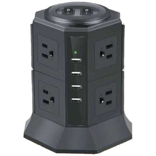 タワー型は縦長形状で、360°全方向にコンセントが配置されているのが特徴です。コンパクトな設置面積で、8〜12口前後と多くの差し込み口を確保できるのが魅力。幅を取るACアダプタを挿しても干渉しづらく、デスク周りの整理にぴったりです。