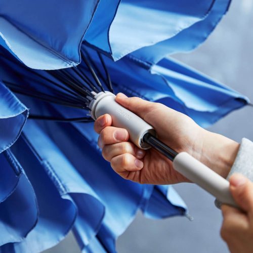 ダブルキャノピー構造と8本骨のフレームを採用し、耐風性に優れているのが特徴。グラスファイバーとアルミ、スチールシャフトで構成された骨組みは、一般的な折りたたみ傘よりも頑丈な作りです。ワンタッチ自動開閉機能により、片手での操作が可能で、忙しいときにもスムーズに使えます。