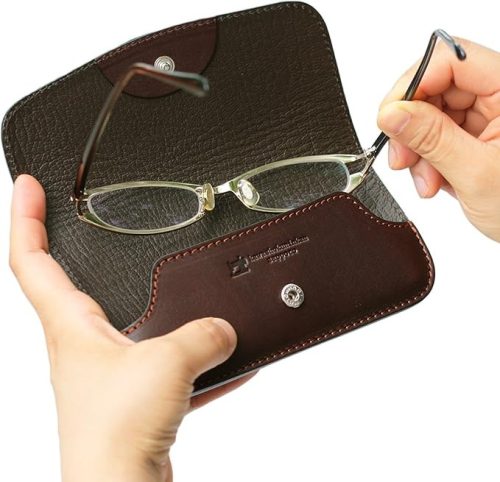 外側はやわらかく上質なPVCレザーを採用。内側はふわふわのナイロン素材を配しており、メガネを傷つけにくい仕様です。カラーは定番12色に加え、おしゃれなバイカラー5色も展開しています。