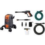 水道や電源がない場所でも使える充電式のポータブルウォッシャーです。18Vリチウムイオン電池を内蔵しており、最大40分連続で稼働。また、5mの自吸ホースが付属しています。バケツなどの水源から直接吸い上げて洗浄可能です。