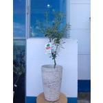 高さ約100~120cmと、存在感のあるサイズです。シャビーな加工を施した、ファイバークレイ素材のプランターに植えてあります。雨風にも強いため、庭やベランダのシンボルツリーにもおすすめです。