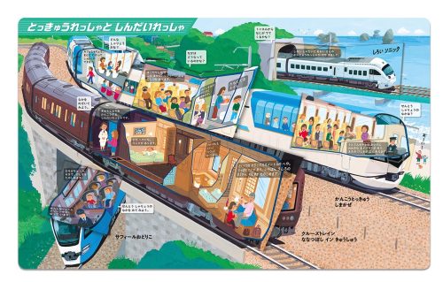 とびらをめくると新幹線が動き出したり、運転席をのぞけたりと、仕掛けが随所に散りばめられています。細部まで丁寧に描かれたイラストのしかけページと、きれいな写真のカジノ バカラ 無料ゲームページを交互に構成しているのも特徴です。