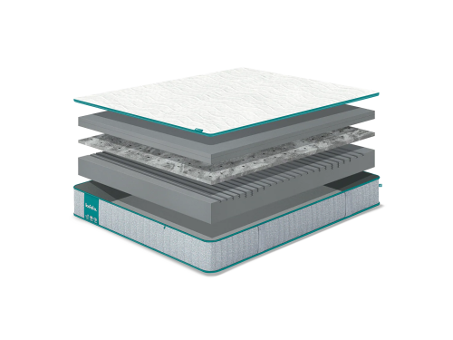 4層構造と5ゾーニング設計で身体を効果的にサポート。腰部分は硬めに、肩や脚の部分は柔らかめに設計し、理想的な寝姿勢を保ちます。中間層に施した通気穴が睡眠中の湿気を効率的に逃がす仕組みです。さらに、竹炭配合のクラウドセルを採用し、抗菌・消臭効果と通気性を両立しています。