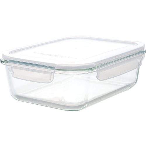 容量1500mlの長方形タイプで、幅23×奥行17.5×高さ7.6cmのゆとりあるサイズ感。4面ロックの蓋がしっかりと密閉し、汁気のある食品も安心して保存できます。冷蔵・加熱ができるため、作り置きやまとめ調理にもぴったりです。