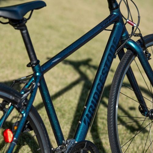 シマノの24段変速システムを搭載。また、ショートリーチのVブレーキによって街乗りでも扱いやすい操作性を実現しています。タイヤサイズは700×32Cで、パンクや段差の衝撃に強いのがメリット。内装式ケーブルを採用し、スマートな見た目を有しているのもおすすめのポイントです。