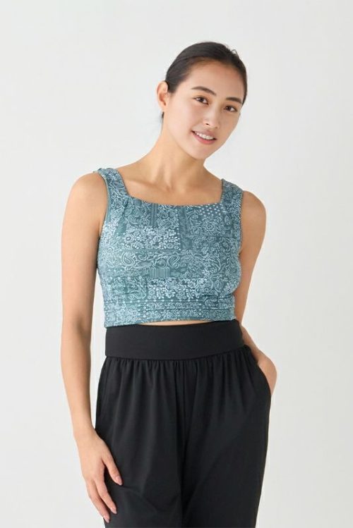 水彩画タッチの花柄が目を引くブラトップ。やわらかな色合いが胸元を華やかに彩り、レッスンのときも気分を高めてくれます。