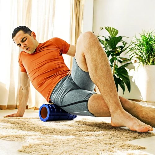 太ももの前側をほぐすときは、うつ伏せで両肘を床につき、ローラーを太ももの下に横向きで置いて前後に転がします。太ももの後側は仰向けや横向きの姿勢で、お尻との境目から膝裏にかけて動かしましょう。お腹に力を入れて腰が反らないようにし、体を床と平行に保ちながら体幹を安定させるのがポイントです。