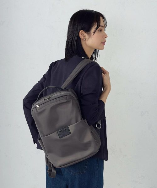 ナイロンとポリエステルを織り交ぜた、控えめな光沢感が特徴のリュック。PCやタブレット端末を収納できるポケットを備え、通勤・通学にぴったりです。