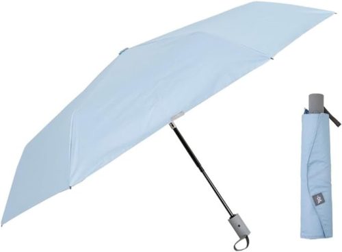 撥水加工により、突然の雨にも対応できます。また、ファスナー付きのおしゃれなケースが付属するため、雨の後にかばんの中を濡らしたくない場合に便利です。アイボリー・ブラック・グレー・アイスブルー・ピンクの5色をラインナップしています。
