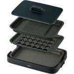 火力は保温から200°Cまで無段階で調整でき、さまざまな料理に対応可能。付属のフタを使うと、焼き料理だけでなく蒸し料理も楽しめます。サイズは約幅30.5×高さ14×奥行き19cmとコンパクトなため、収納スペースが限られている方にもおすすめです。