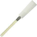 アサリなしの刃なので、なめらかな切り口に仕上がります。刃渡りは200mmと取り回しやすいコンパクトサイズ。握りやすいゴムグリップを採用しており、滑りにくくしっかり力が伝わります。また、刃の交換時に工具は不要。楽に扱えて便利です。