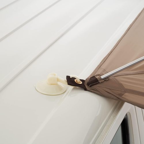 上部を吸盤で固定し下部の裾にペグを打ち込むだけと、簡単に設営できるのもポイント。吸盤の位置を変えられるほか、コードロックでロープの長さも調節できます。さまざまなミニバンに対応する、汎用性が高いモデルです。