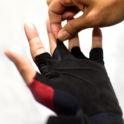 フィット感に優れたフィンガーレス仕様のグローブ。第2関節まで覆う設計で、スムーズな脱着が可能です。手の保護のほか、日差しが気になる季節のUVケア対策としても役立ちます。