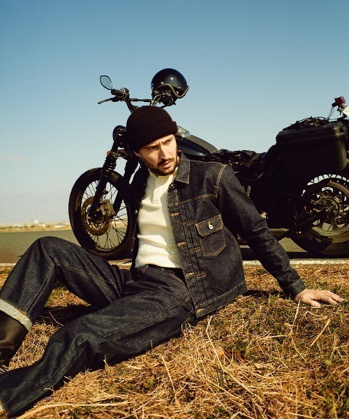 1stタイプを象徴するフラップポケットや、金茶色のステッチがデザインのアクセント。さらに、バックスタイルにはシンチバックとTバック仕様を取り入れ、無骨で洗練されたシルエットを演出します。タフで長く愛用できる一着を探している方におすすめです。