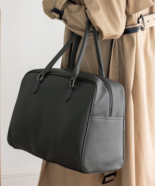 また、ハンドルバインダーを採用し、持ち手を一体化させることでしっかり握れるのもポイント。ロングハンドルにより肩掛けしたまま携行できます。厚手でシボ感のあるフェイクレザーを素材に使い、上品でユニセックスなルックスに仕上げているのも魅力。荷物の多い方はチェックしてみてください。