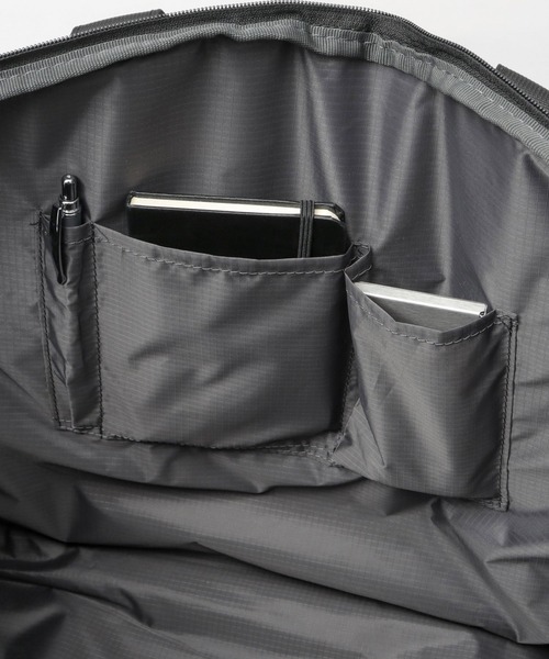 多数のポケットを備え、小物類を整理しやすいのが特徴。また、開口部が大きく開く天蓋仕様で、荷物の出し入れもスムーズに行えます。仕事帰りのジム通いなどにおすすめのアイテムです。