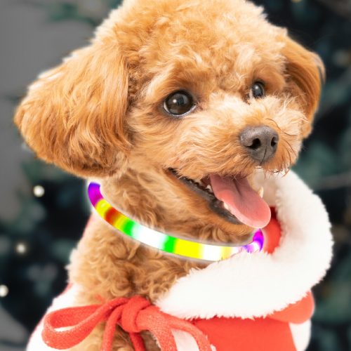 軽くて明るいと好評。レインボーの発光がかわいらしいとの声が多数寄せられています。遠くからでもしっかり目立ち、通行人や車が気づきやすいので、早朝・夜間の散歩を安心して楽しみたい方にぴったりです。