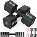 ダンベルとバーベルの両方で使える製品。ジョイントシャフトを連結すれば、ダンベル2個をバーベルに変換できます。初心者から上級者まで、トレーニングレベルに応じて幅広く活用できるのが魅力です。
