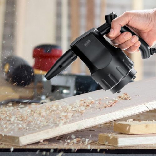 電動式は内蔵モーターで空気を送り出す仕組み。ガスを使わないため比較的安全性は高めです。充電式とAC電源式があり、用途にあわせて選べます。充電式はコードレスで持ち運べるので、洗車や屋外での使用にぴったり。AC電源式なら時間を気にせず安定して作業可能です。
